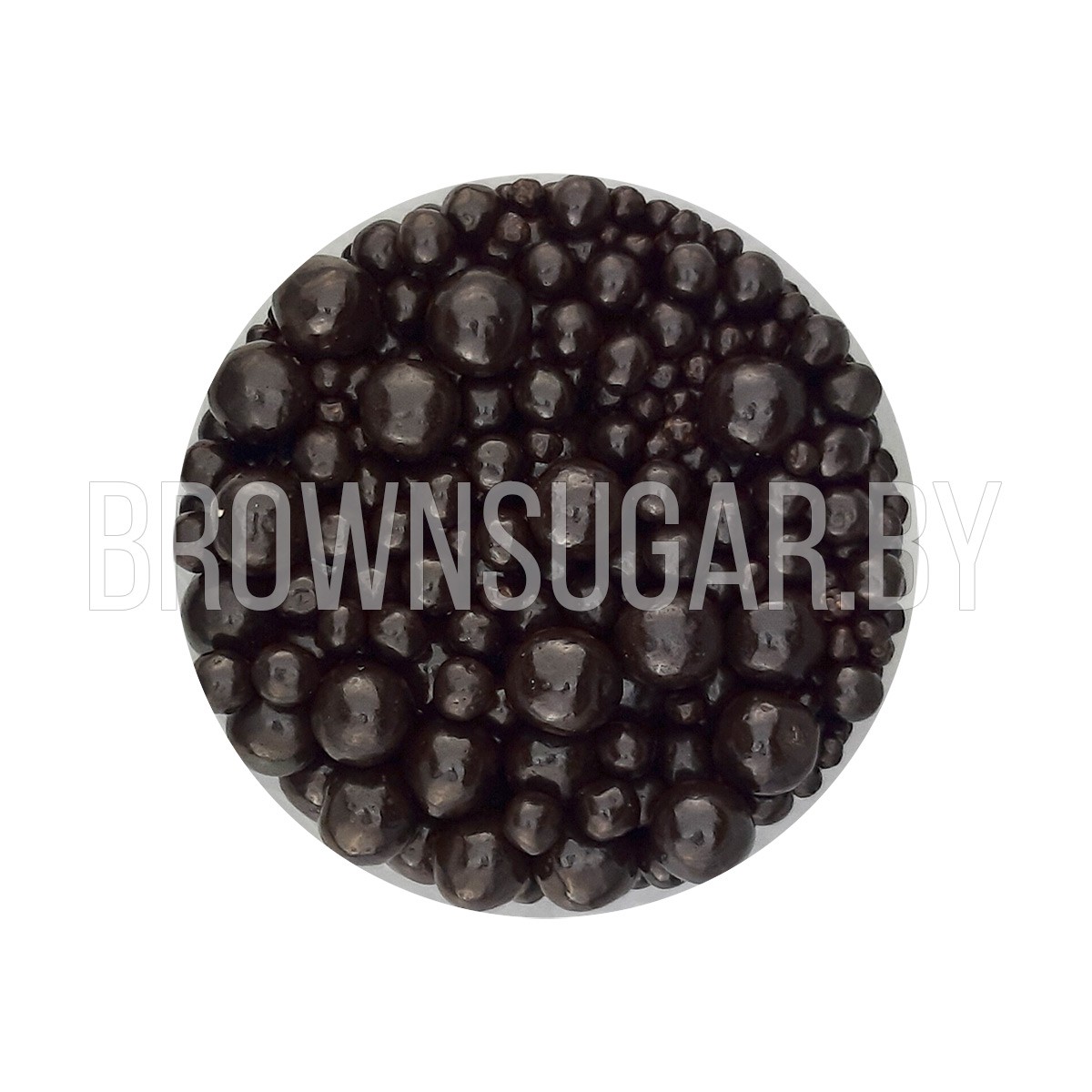 Декор шарики в шоколадной глазури микс (2-4,5-7,9-11 мм) тёмный шоколад (Россия, 50 гр)