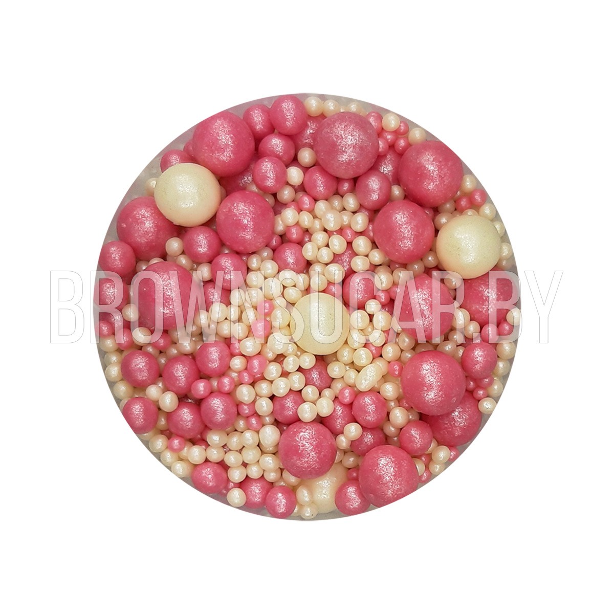 Драже взорванные зерна риса Жемчуг Розово-белый микс (Россия, 50 гр)