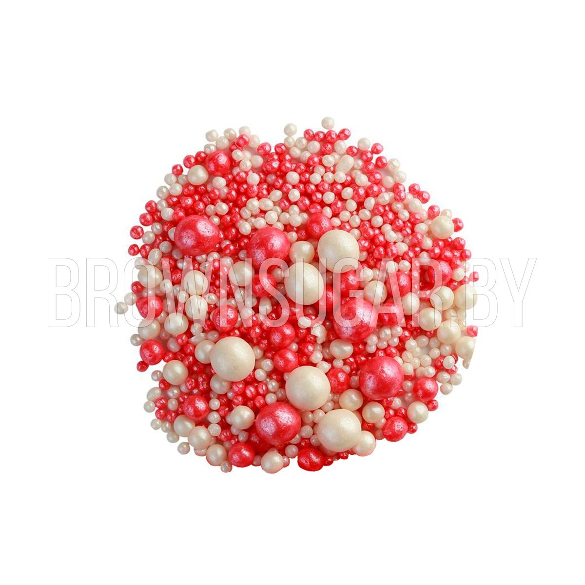Драже взорванные зерна риса Жемчуг Красно-белый микс (Россия, 50 гр)