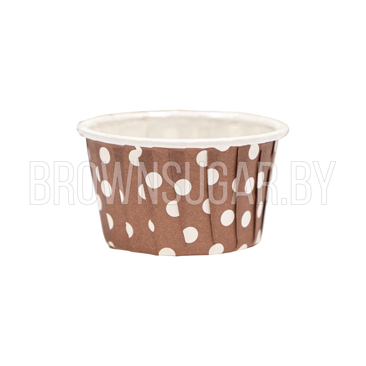 Форма бумажная Маффин мини Коричнеый фон белый горох (Россия, 38х30 мм, 10 шт)