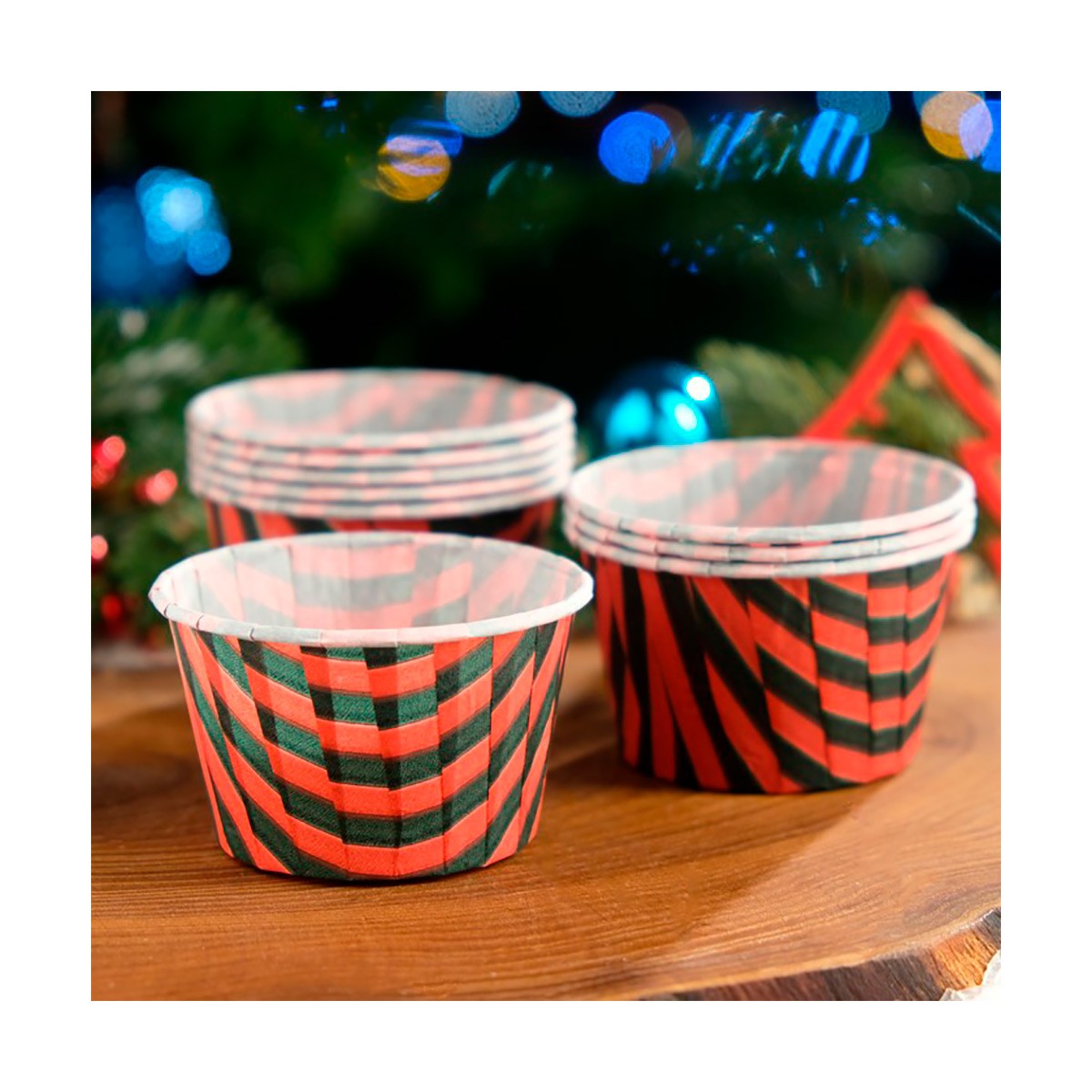Форма бумажная Маффин Новогодние полоски (Россия, 50х40 мм, 10 шт)