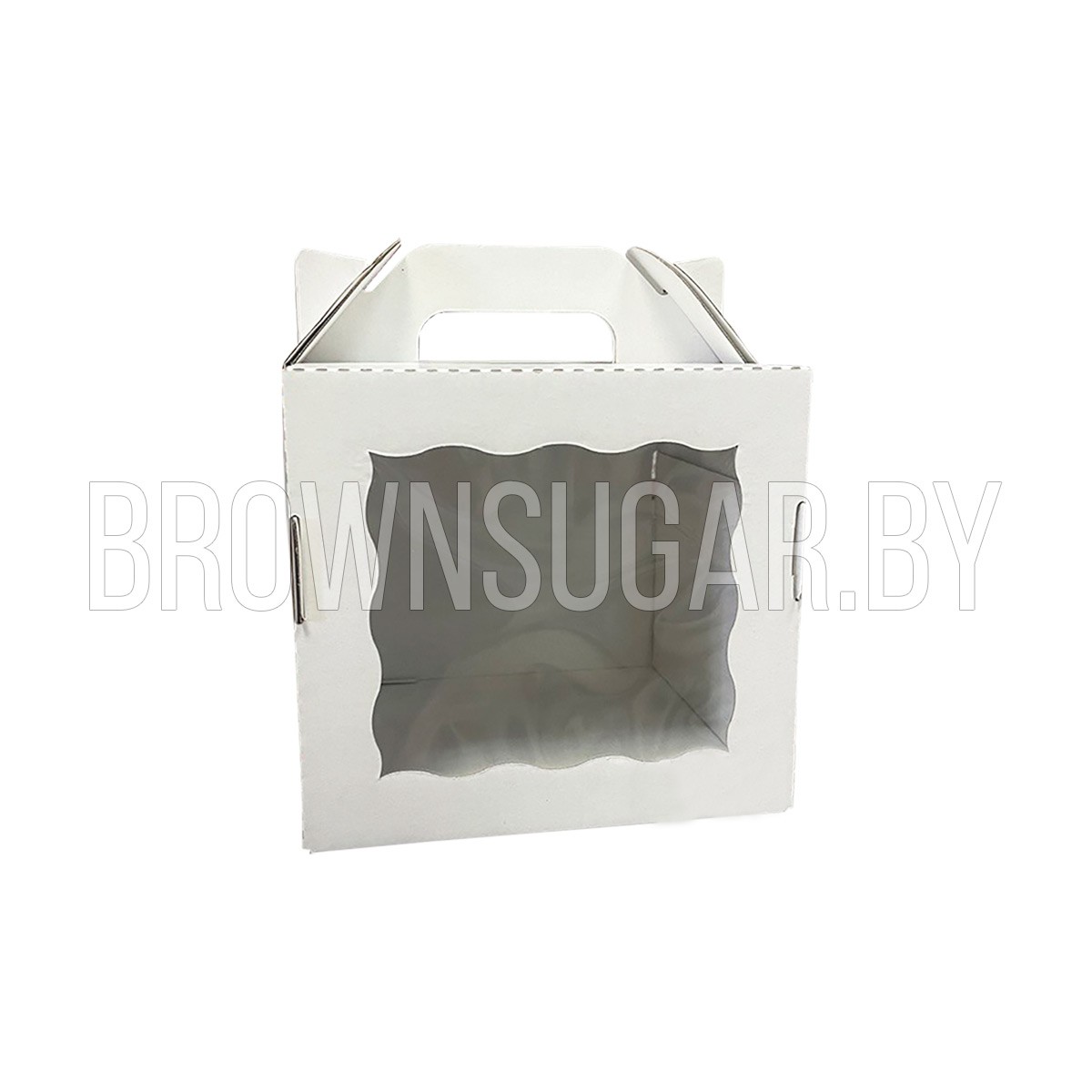 Коробка - чемодан для торта с окном Белая (Беларусь, 200х200х190 мм)