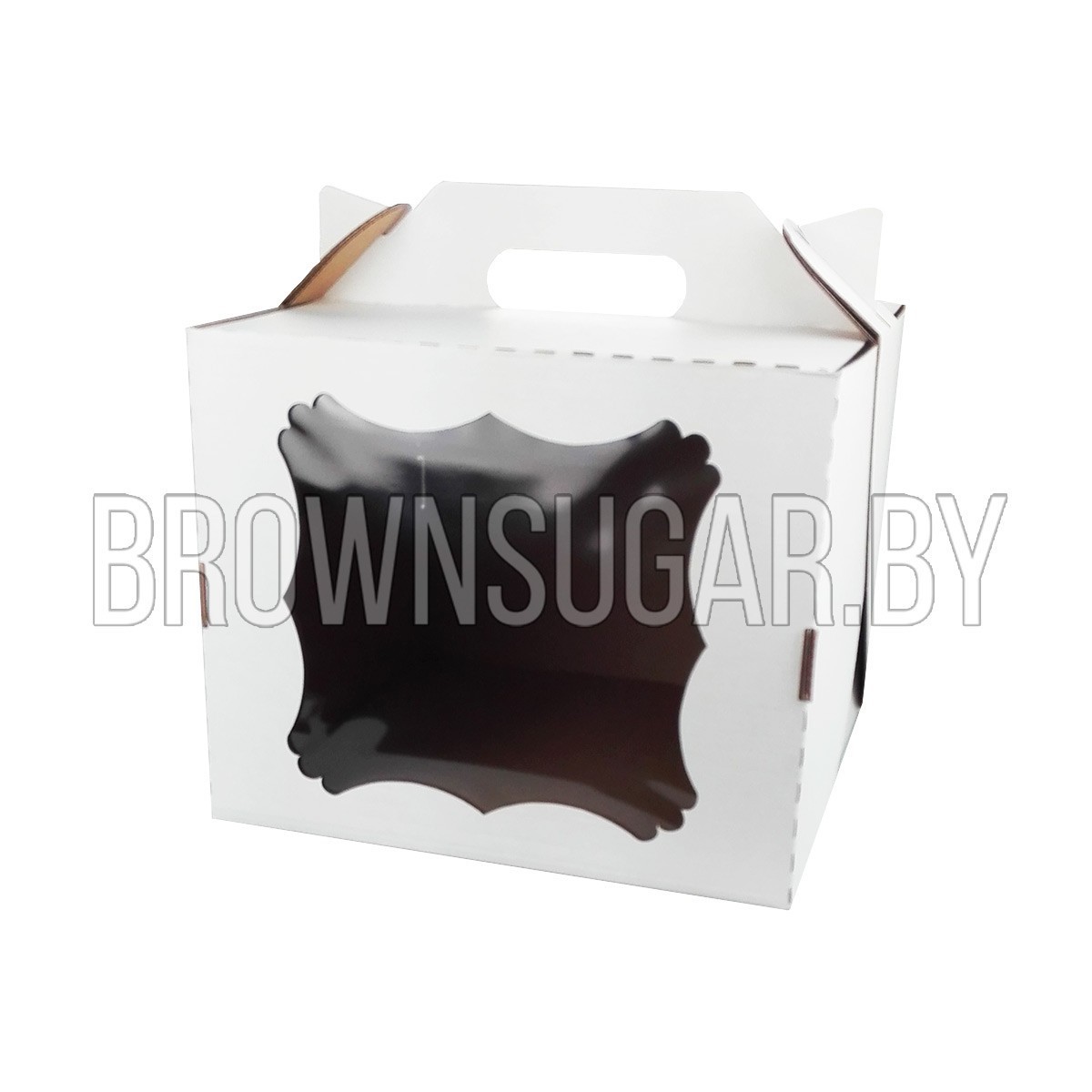 Коробка - чемодан для торта с окном Белая (Беларусь, 240х240х240 мм)