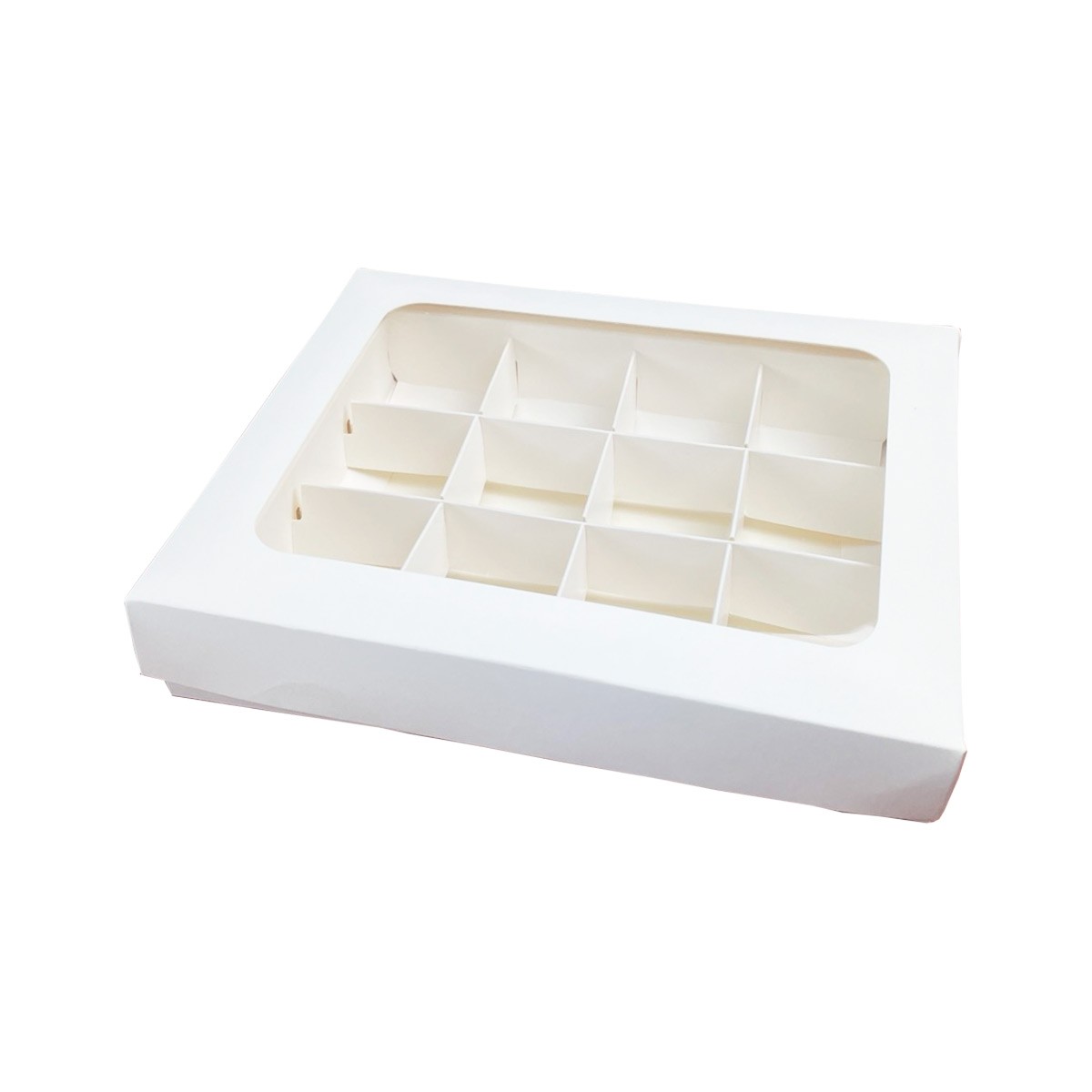 Коробка для 12 конфет Белая с вклееным окном (Беларусь,190х150х30 мм)