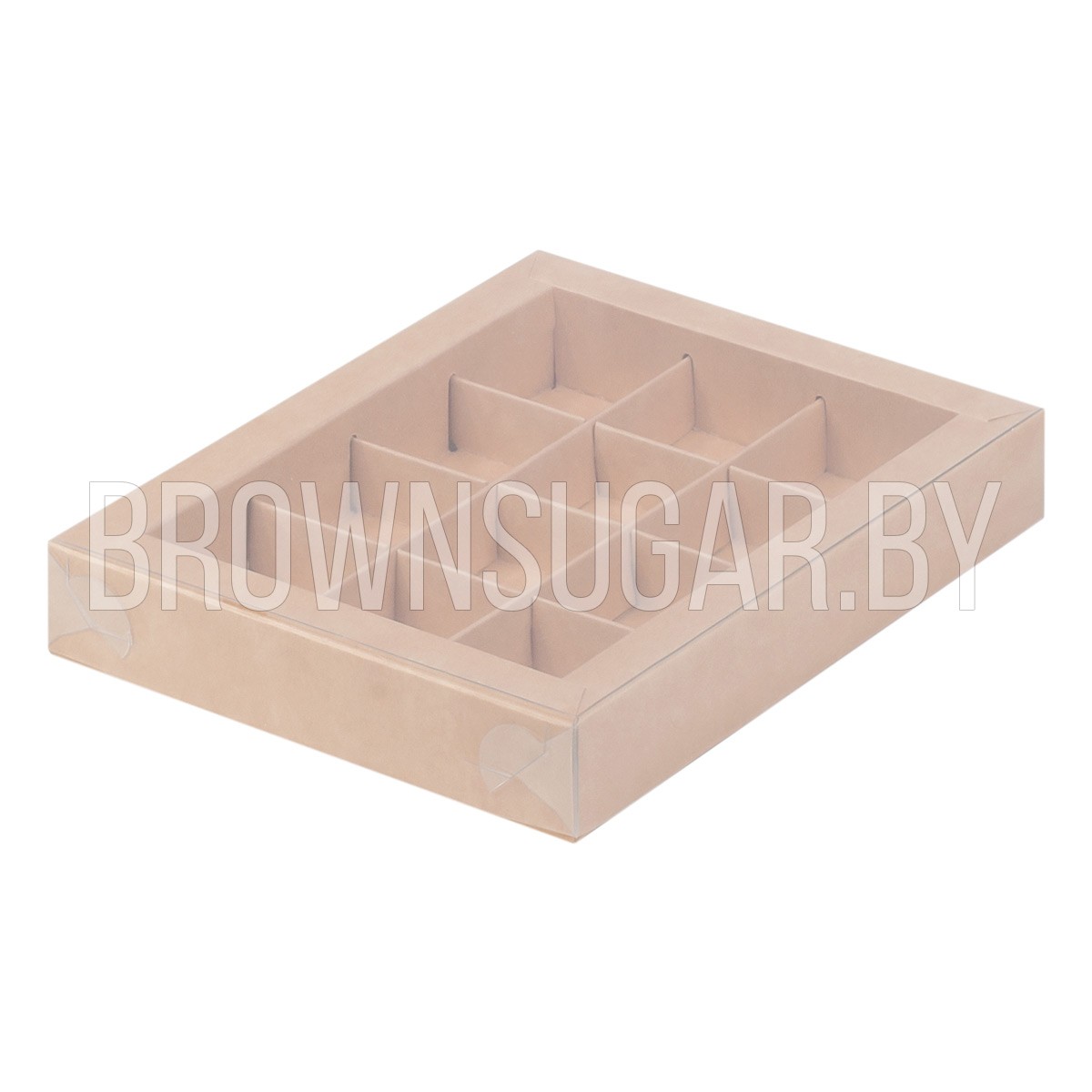 Коробка для 12 конфет Крафт с пластиковой крышкой (Россия, 190х150х30 мм)