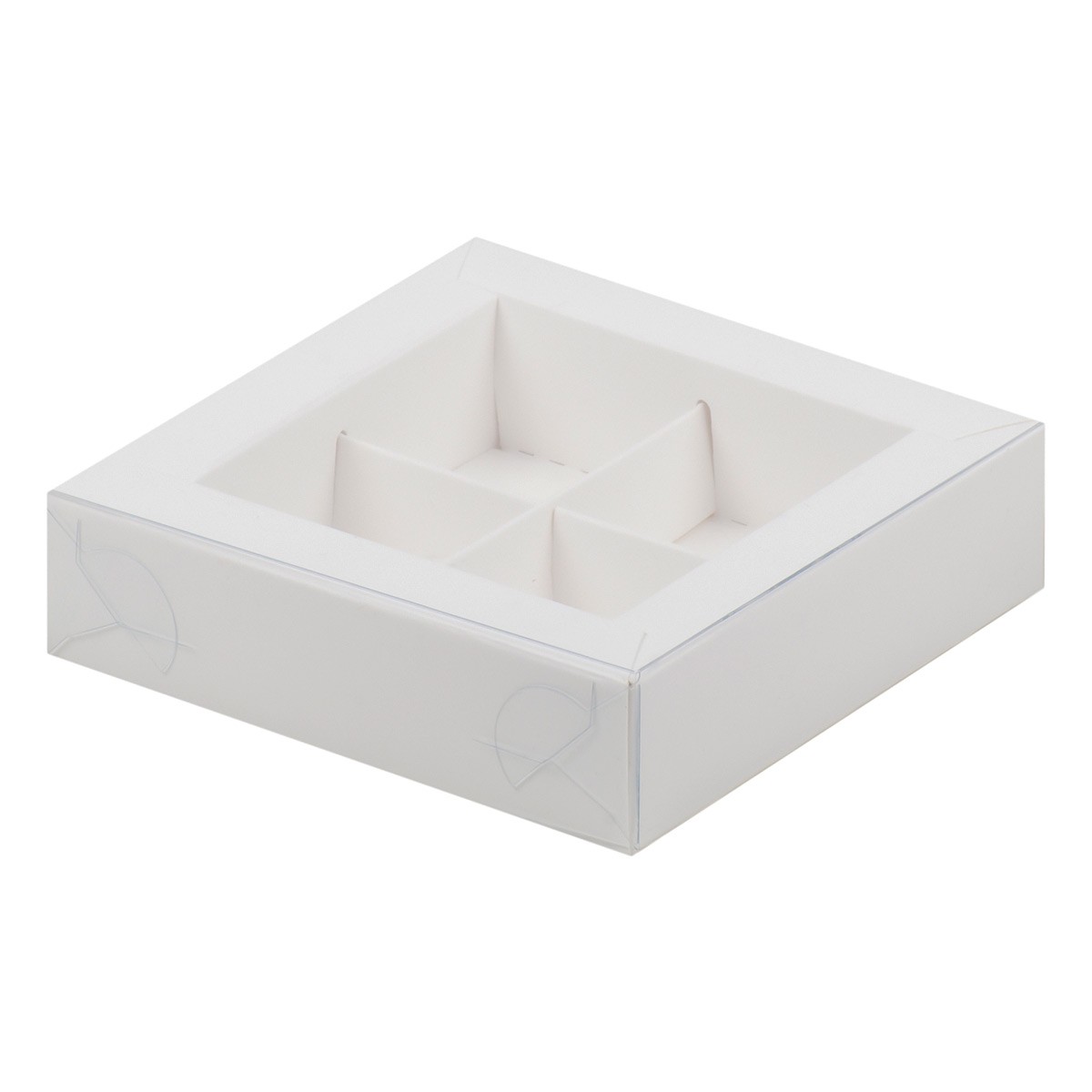 Коробка для 4 конфет с пластиковой крышкой белая (Беларусь,120х120х30 мм) 051001