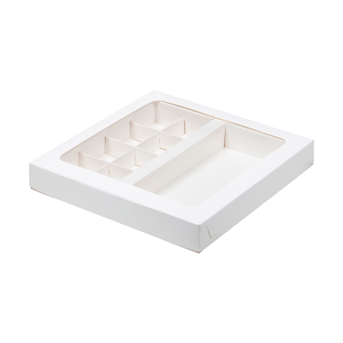 Товар Коробка для 8 конфет + шоколадной плитки Белая с вклееным окном (Россия, 200х200х30 мм + 160х80 добавлен в корзину