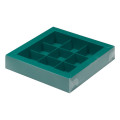 Коробка для 9 конфет Зеленая матовая с пластиковой крышкой (Россия, 155х155х30 мм)