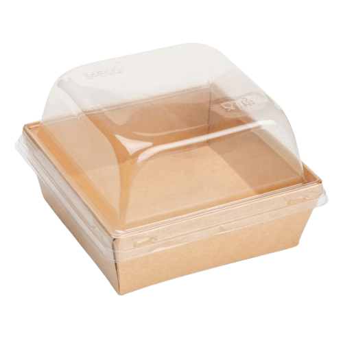 Коробка для Бенто-торта c купольной крышкой крафт (Россия, 130х130х85, дно 110х110мм)
