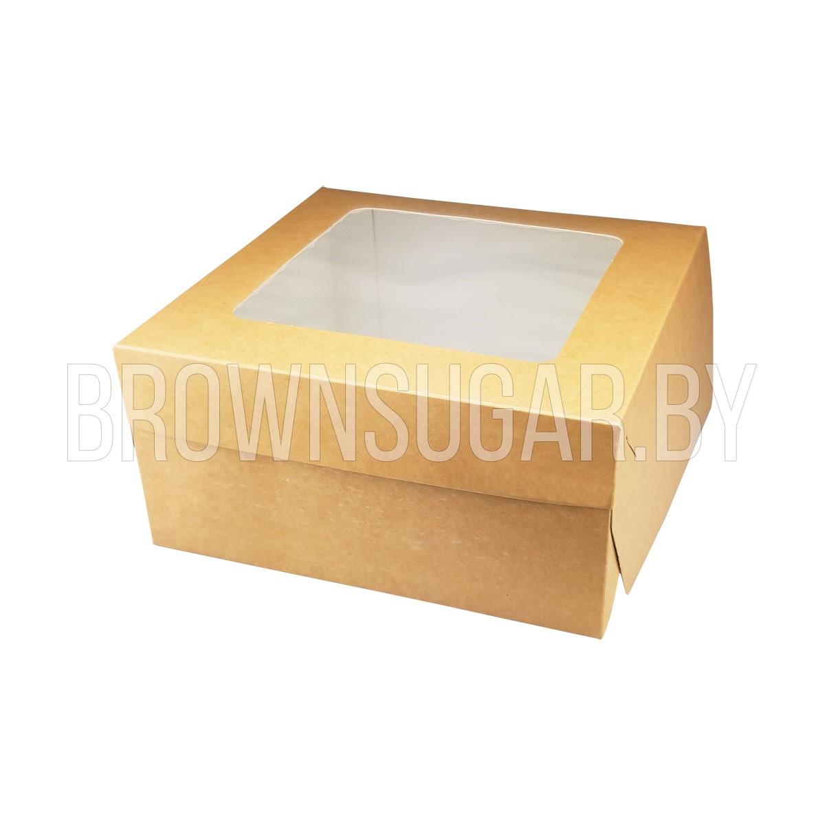 Коробка для десерта с окном крафт-белая (Россия, белый картон, 225х225х110 мм)