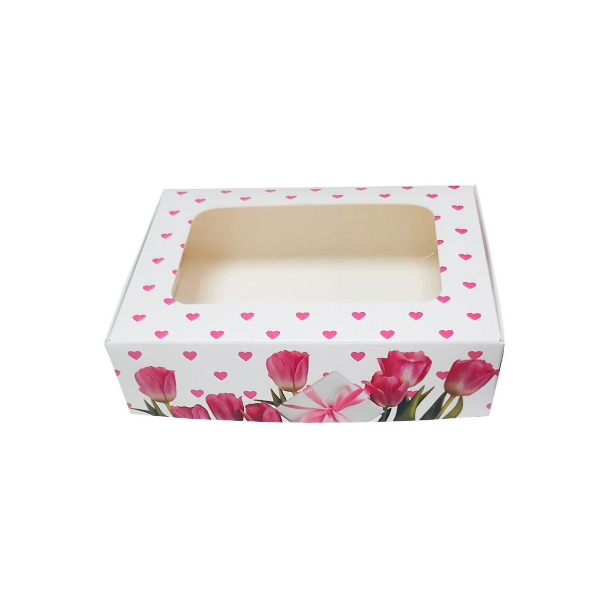 Коробка для десертов Тюльпаны с сердечками 2 (Россия,15х11х4см) 57