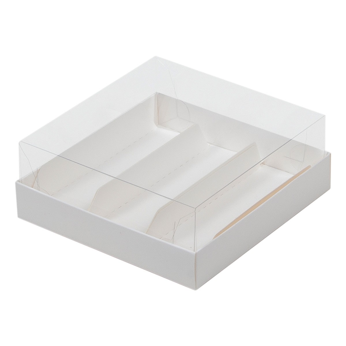 Коробка для эклеров и эскимо с прозрачным куполом, Белая, 3 ложемента (Россия, 135х130х50 мм) 070170