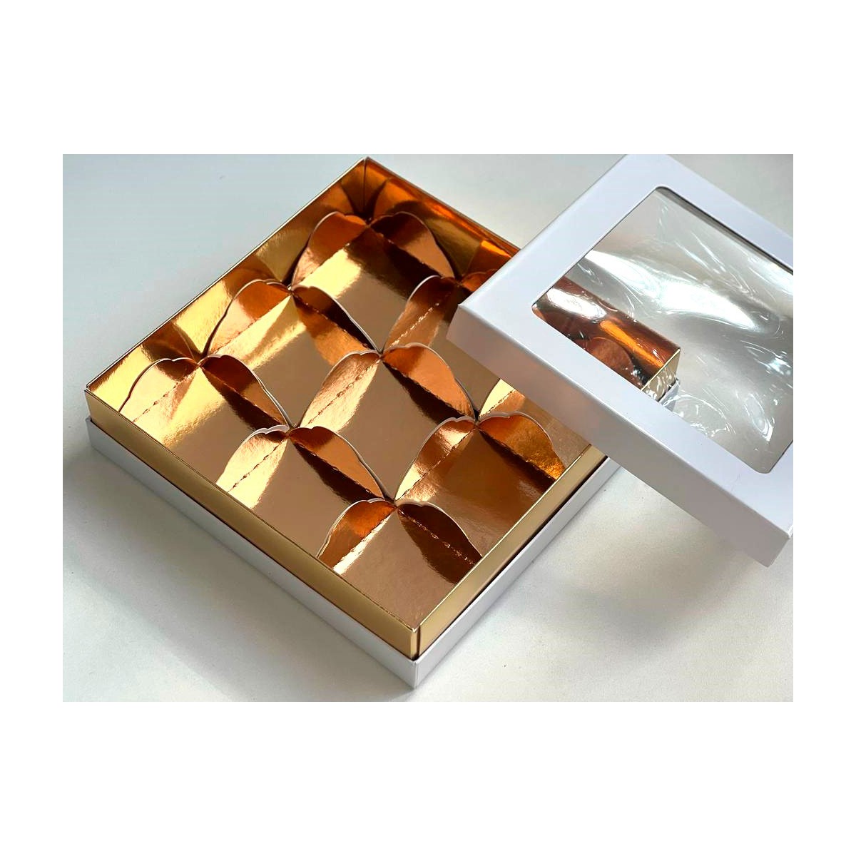 Коробка для 9 моти премиум с большим окном Белая/золото (Россия, 180х180х45 мм) 070950