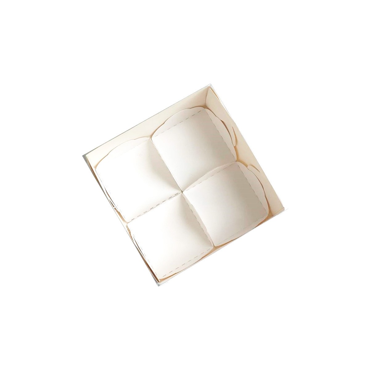 Белая коробка на 4 моти с ложементами и прозрачной крышкой – стильная и практичная упаковка для азиатских десертов. Подходит для хранения, презентации и доставки.