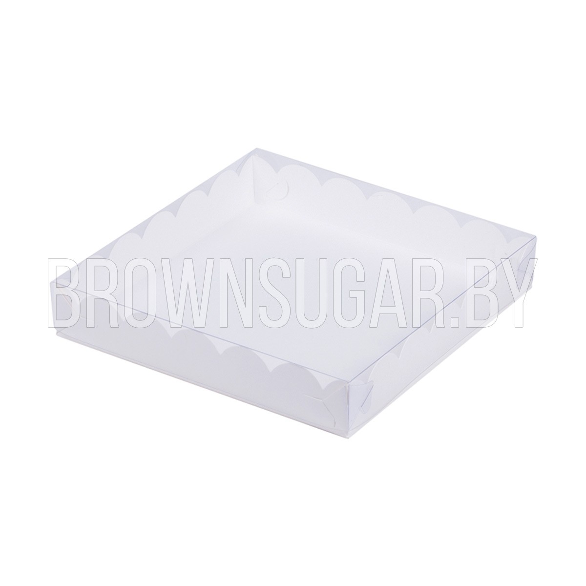 Коробка для печенья и пряников с прозрачной крышкой Белая (Россия, 250х250х35 мм)