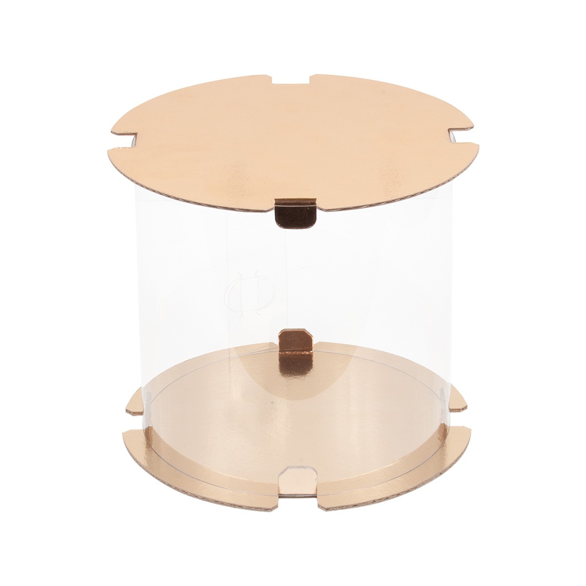Коробка для торта, пряничный домик прозрачная, тубус Золото (Россия, 200х200 мм) 022511