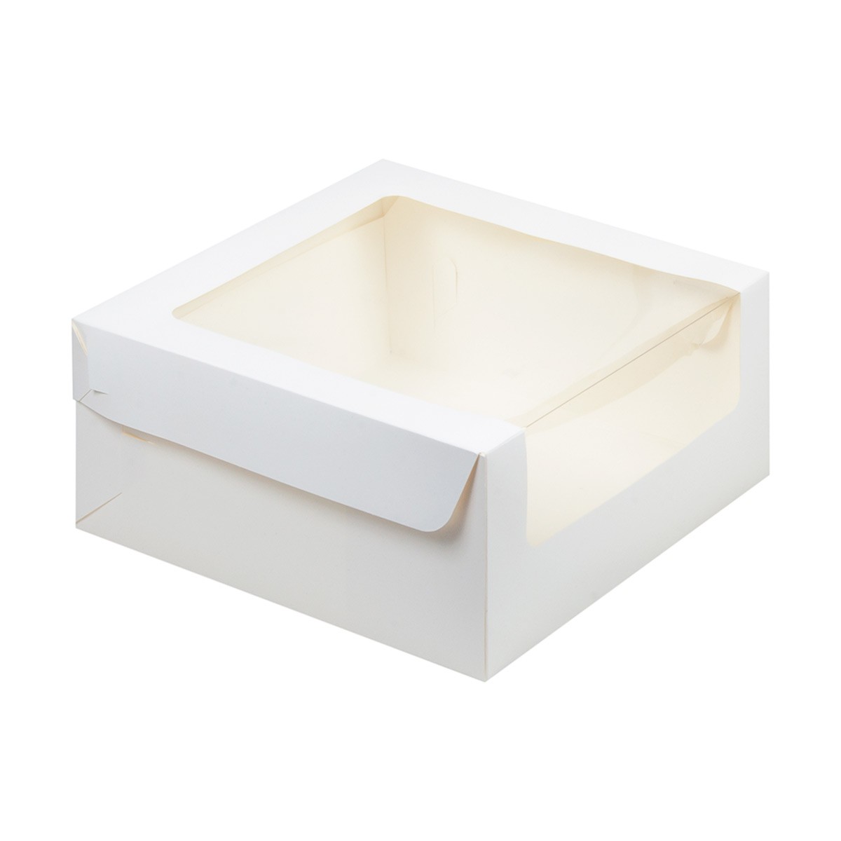 Коробка для десерта с окном белая-крафт (Россия, белый картон, 225х225х110 мм) KT 110 (с окном)-б/к