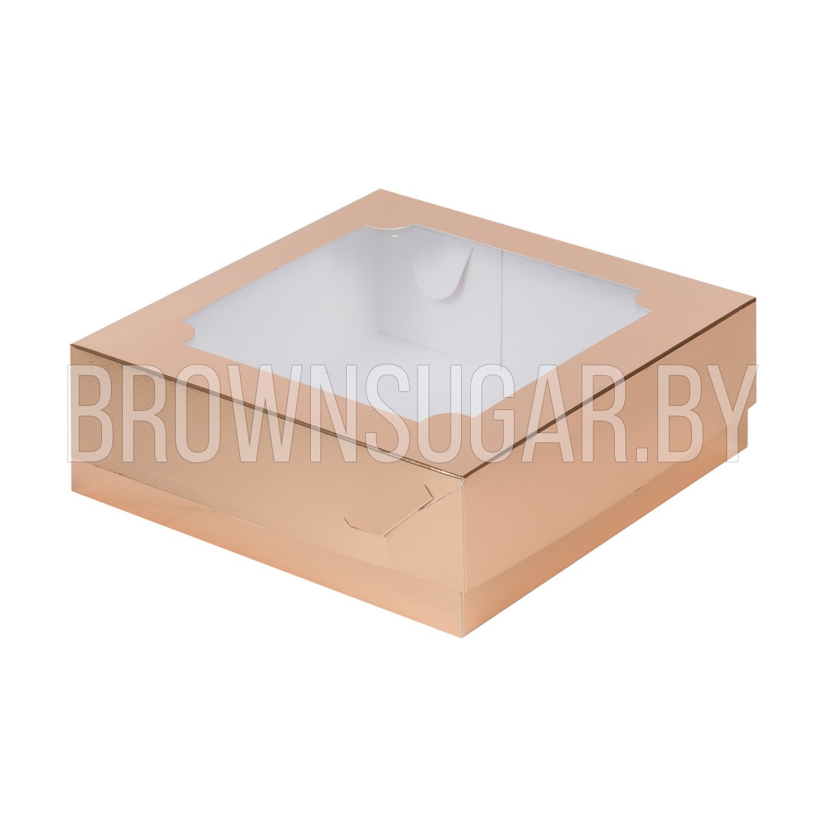 Коробка для зефира и печенья Золото с фигурным окошком (Россия, 200х200х70 мм) 070230