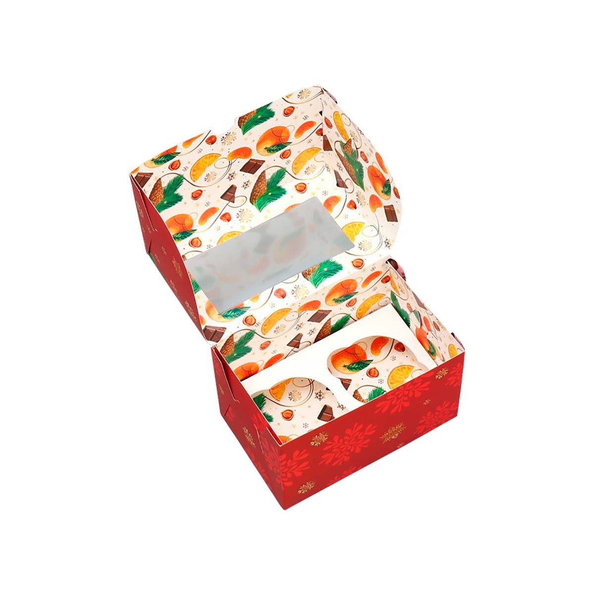 Коробка на 4 капкейка с двусторонним нанесением Апельсины (Россия, 16х16х10 см) 9771218