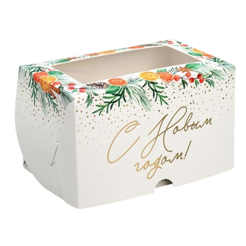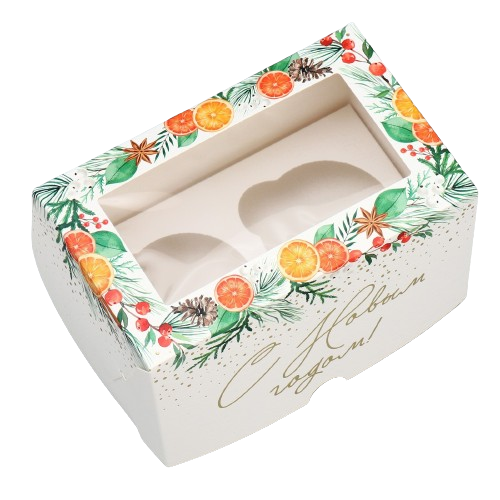 Коробка на 2 капкейка С Новым Годом! Мандарины (Россия, 160х100х100 мм) 9771487