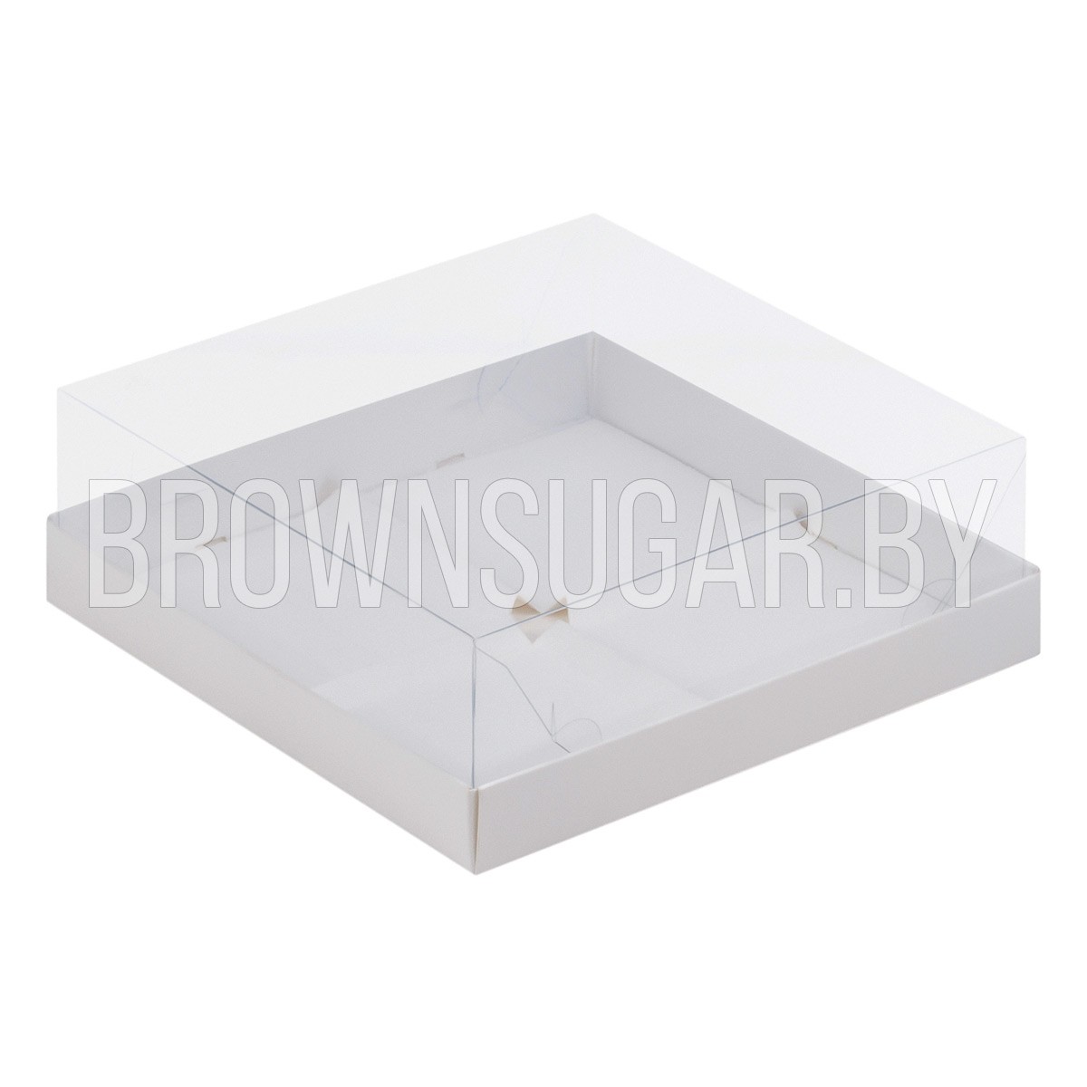 Коробка для 4 муссовых пирожных с пластиковой крышкой (Россия, 170х170х60 мм)070510