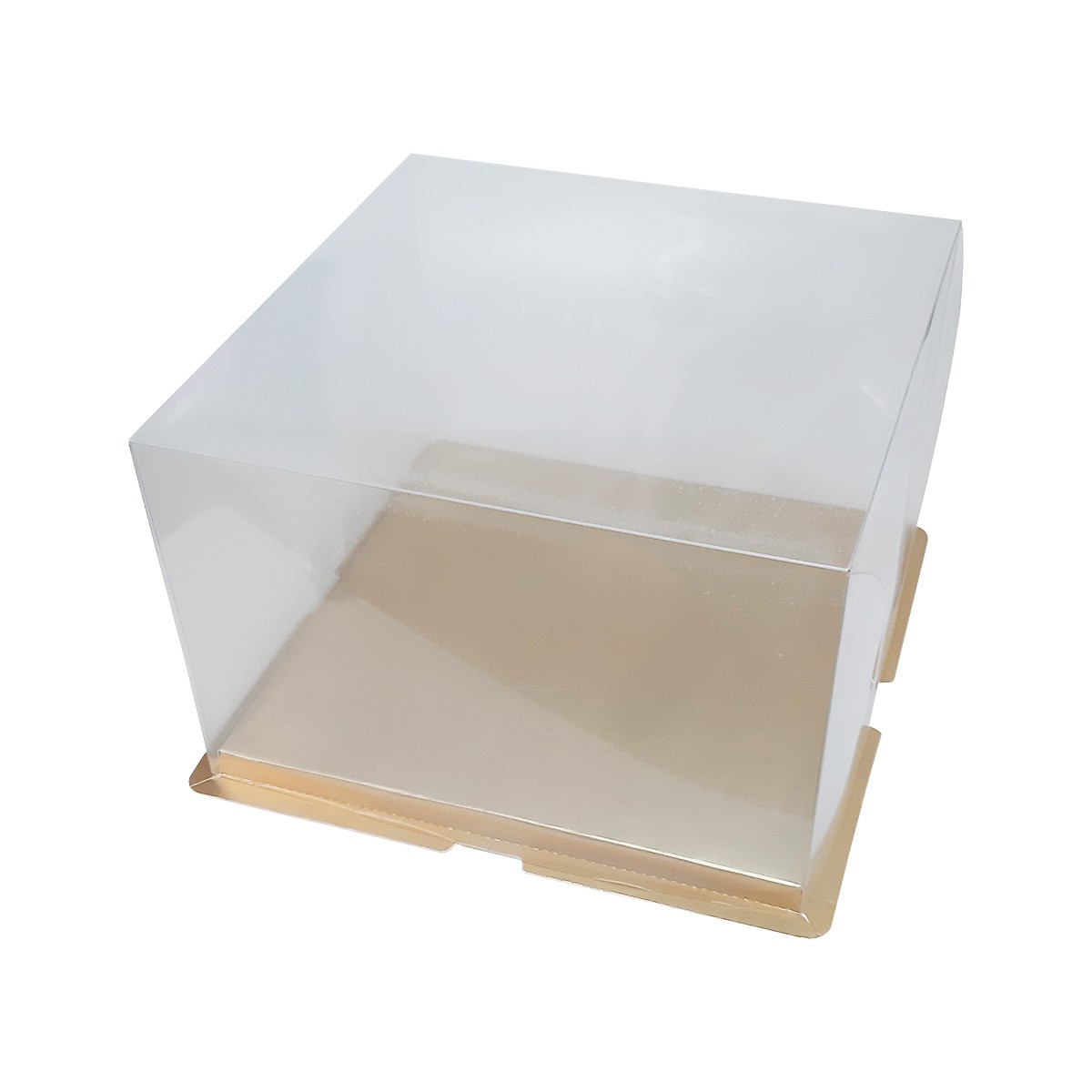 Коробка под торт ПРЕМИУМ прозрачная, бронза (Россия, 260х260х160 мм)