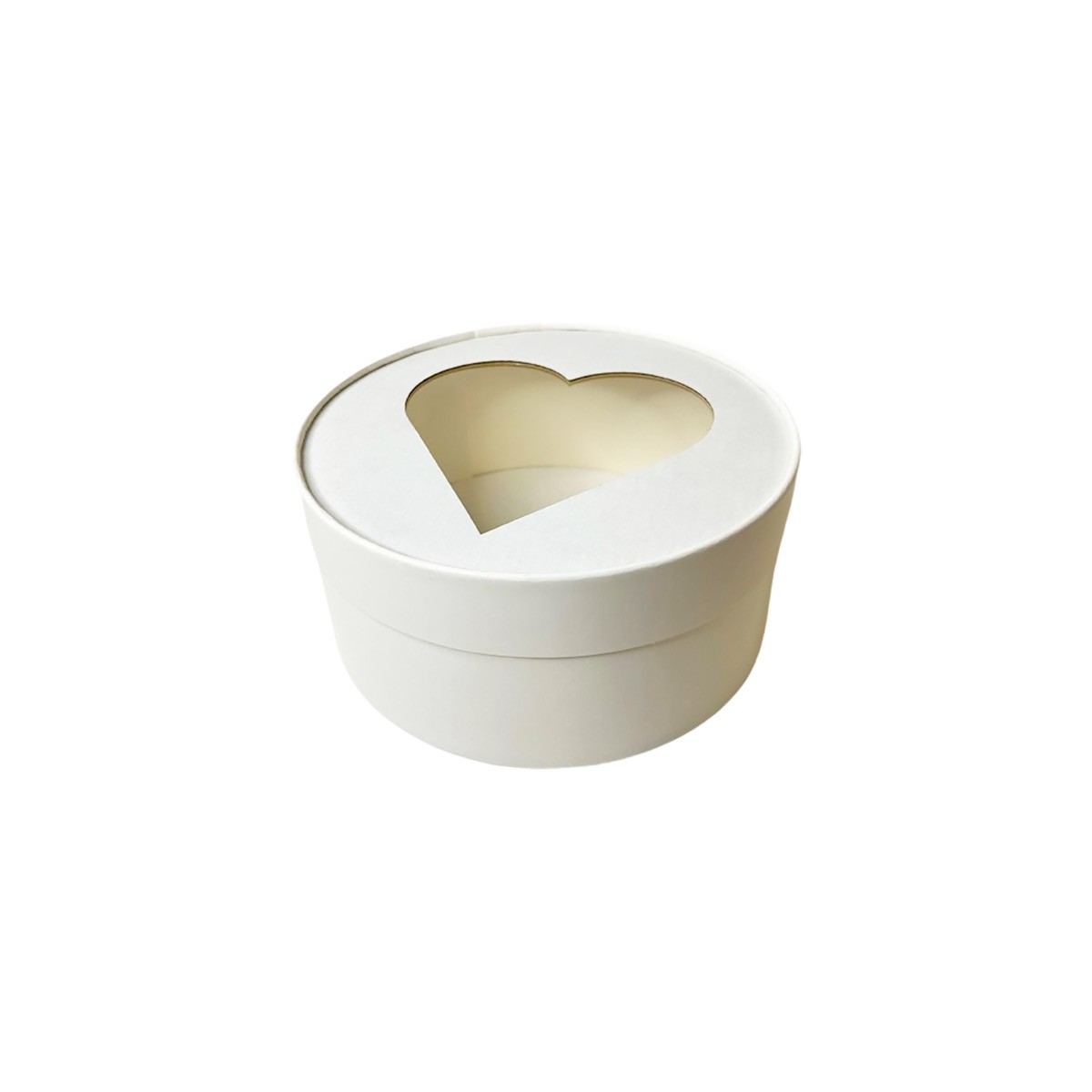 Коробка под зефир, печенье и макароны шляпная с окном СЕРДЦЕ Белая, d16см, h7см