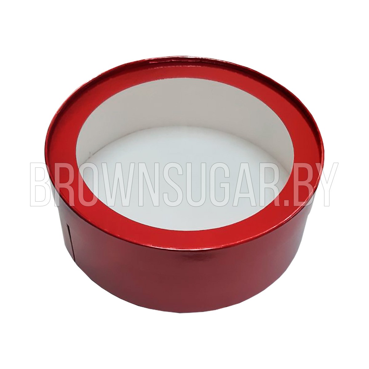 Коробка шайба под зефир, печенье, макароны круглая Красная глянцевая (Россия, d 200 h 70 мм) 070431