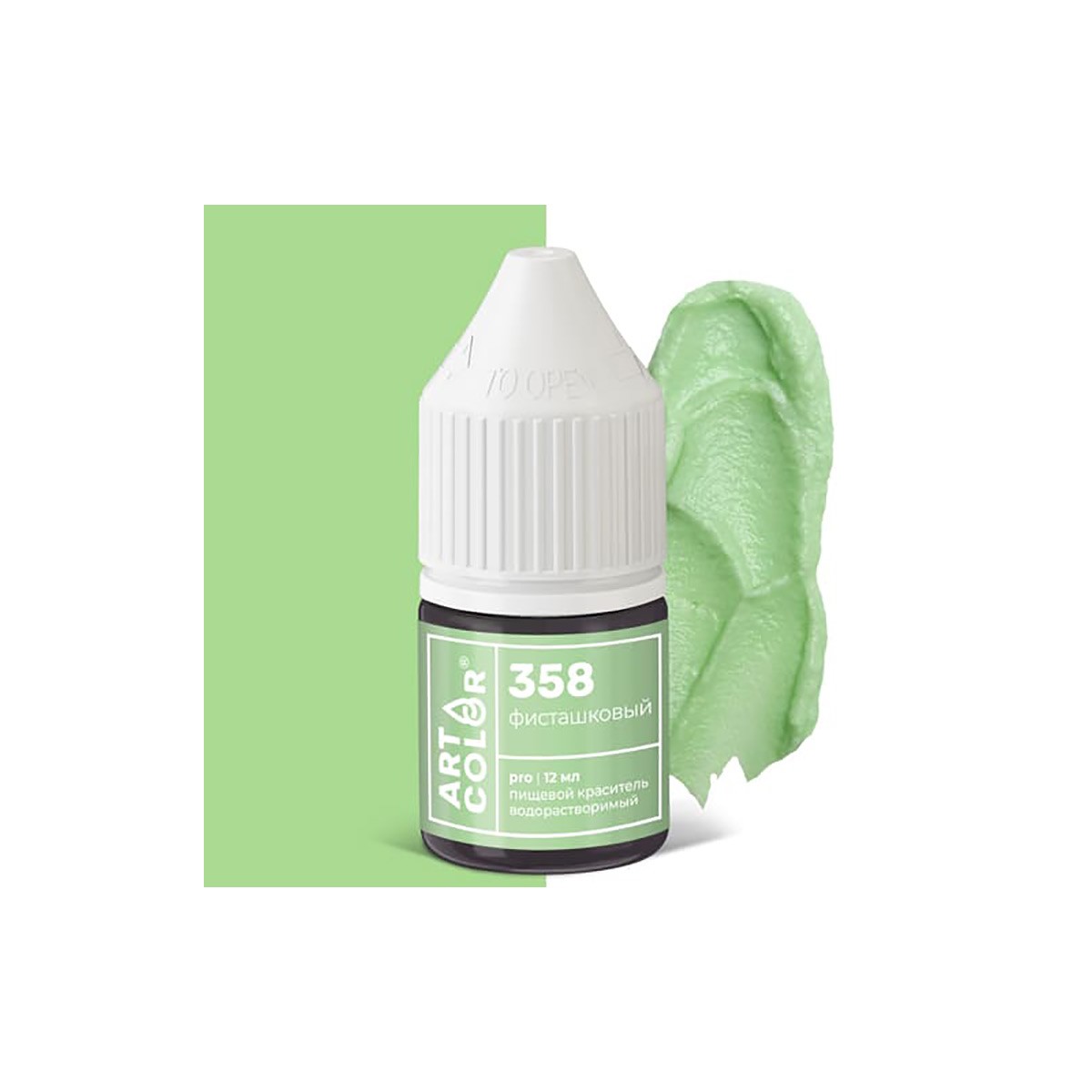 Фисташковый (Art Color Pro) — пищевой высококонцентрированный гелевый краситель для кулинарных экспериментов. Удобный флакон 12 мл с мерным носиком и контролем первого вскрытия. Номер Pantone — 358С. Используется для окрашивания продуктов питания и различных кондитерских изделий (теста, мастики, айсинга, марципанов, кремов и т.д.). Также можно использовать для творчества (мыловарение, слаймы и т.д.).