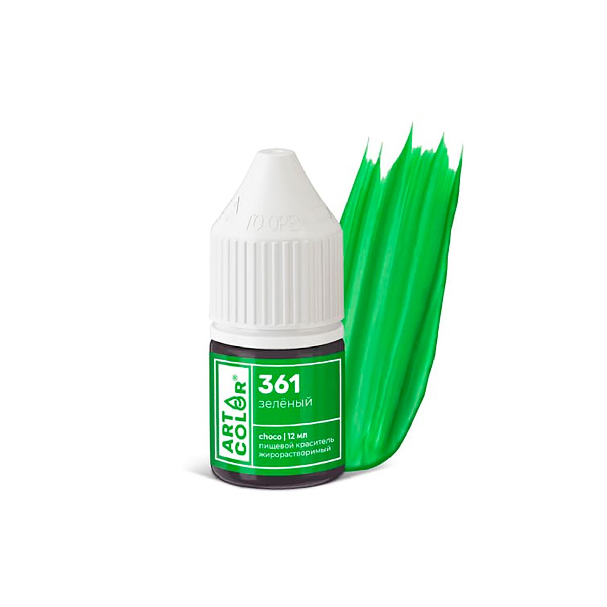Зеленый (Art Color Choco) — пищевой высококонцентрированный жирорастворимый гелевый краситель для кулинарных экспериментов. Удобный флакон 15 мл с мерным носиком и контролем первого вскрытия. Номер Pantone — 361C.