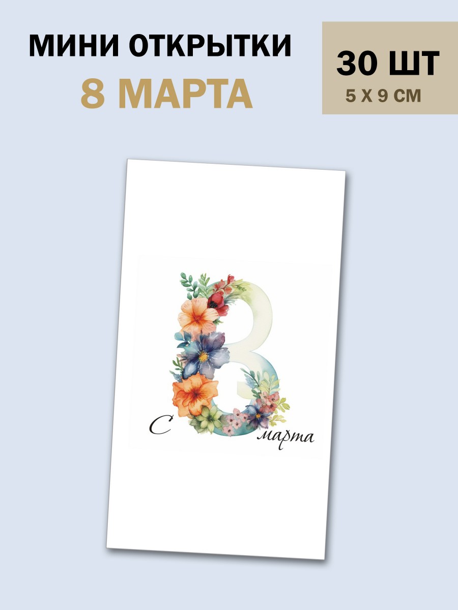Набор открыток С 8 марта цифра (РБ,30шт.,50х90мм)