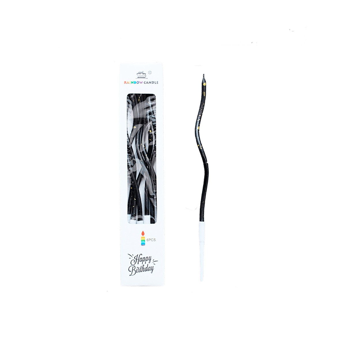 Набор свечей для торта Серпантин, коктейльные, черные (Китай, 6 шт)