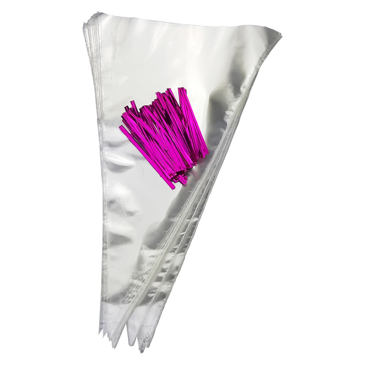 Купить конусные пакеты можно в нашем магазине в комплекте с розовой завязкой твист-лентой.