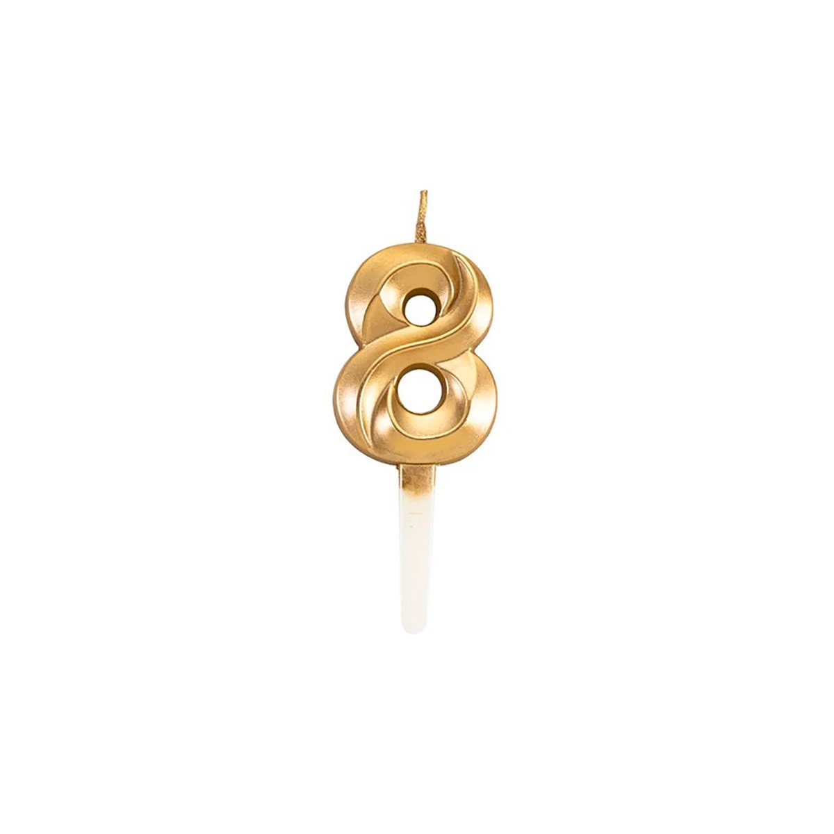 Свеча в торт цифра 8 с гранью, золото (Китай, 5 см, 1 шт)