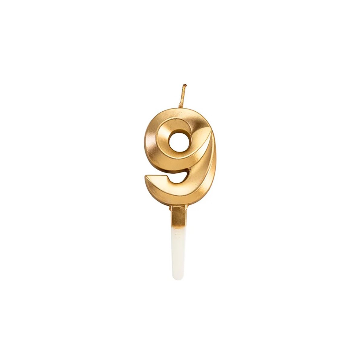 Свеча в торт цифра 9 с гранью, золото (Китай, 5 см, 1 шт)