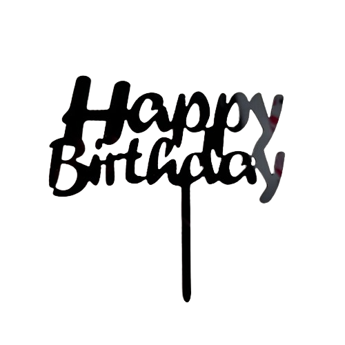Топпер Happy birthday черный (Китай, пластик, 11х16 см) SG-T1 HB25