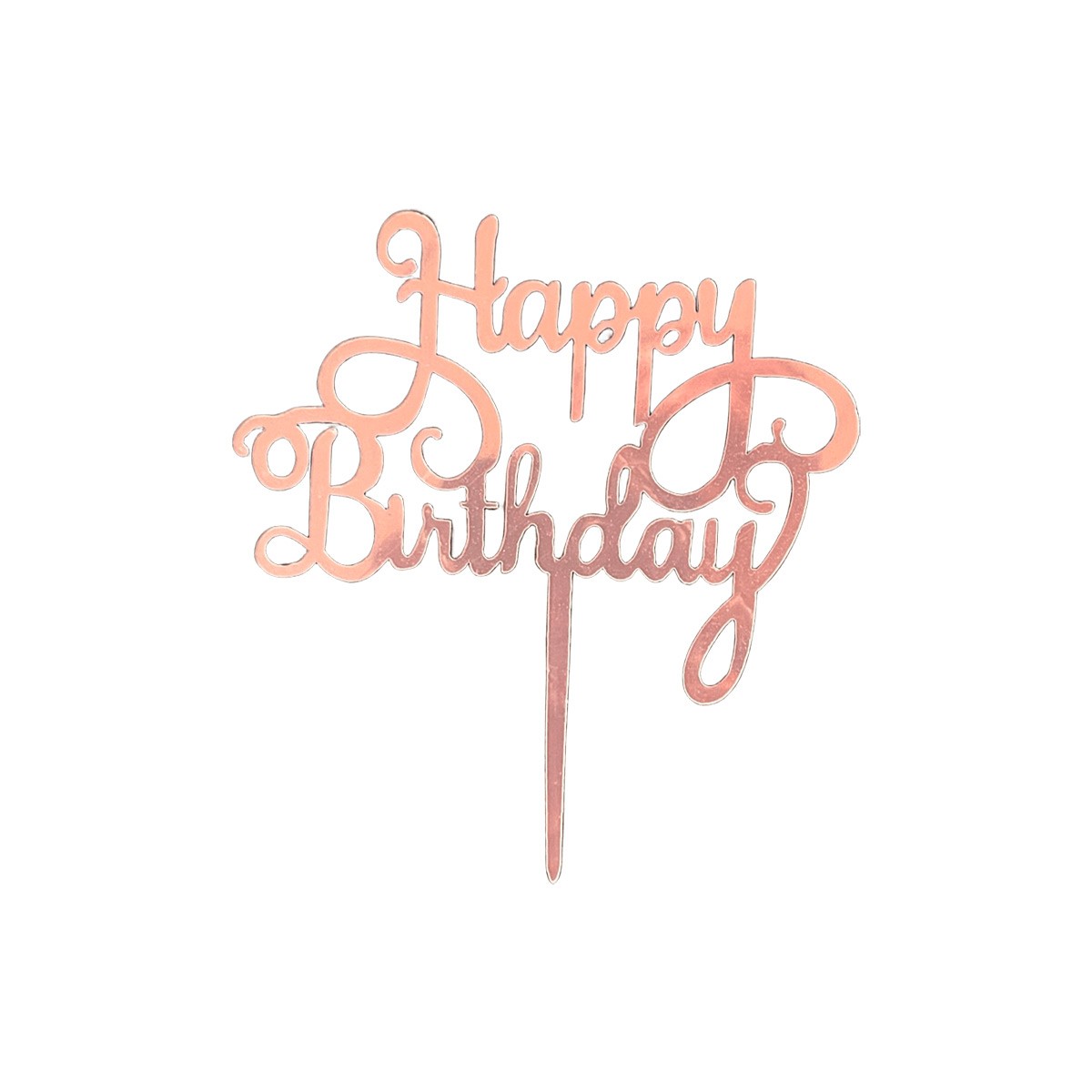 Топпер Happy birthday розовый (Китай, пластик, 10,5х16 см)