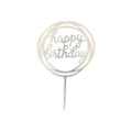 Топпер Happy birthday серебряный круглый (Китай, пластик, 11х16 см) SG-T1 HB-28