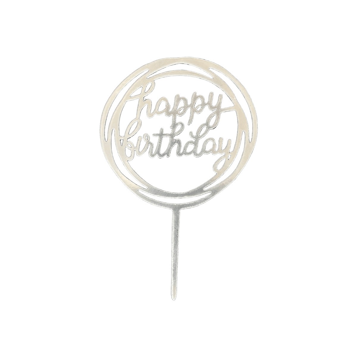 Товар Топпер Happy birthday серебряный круглый (Китай, пластик, 11х16 см) SG-T1 HB-28 добавлен в корзину